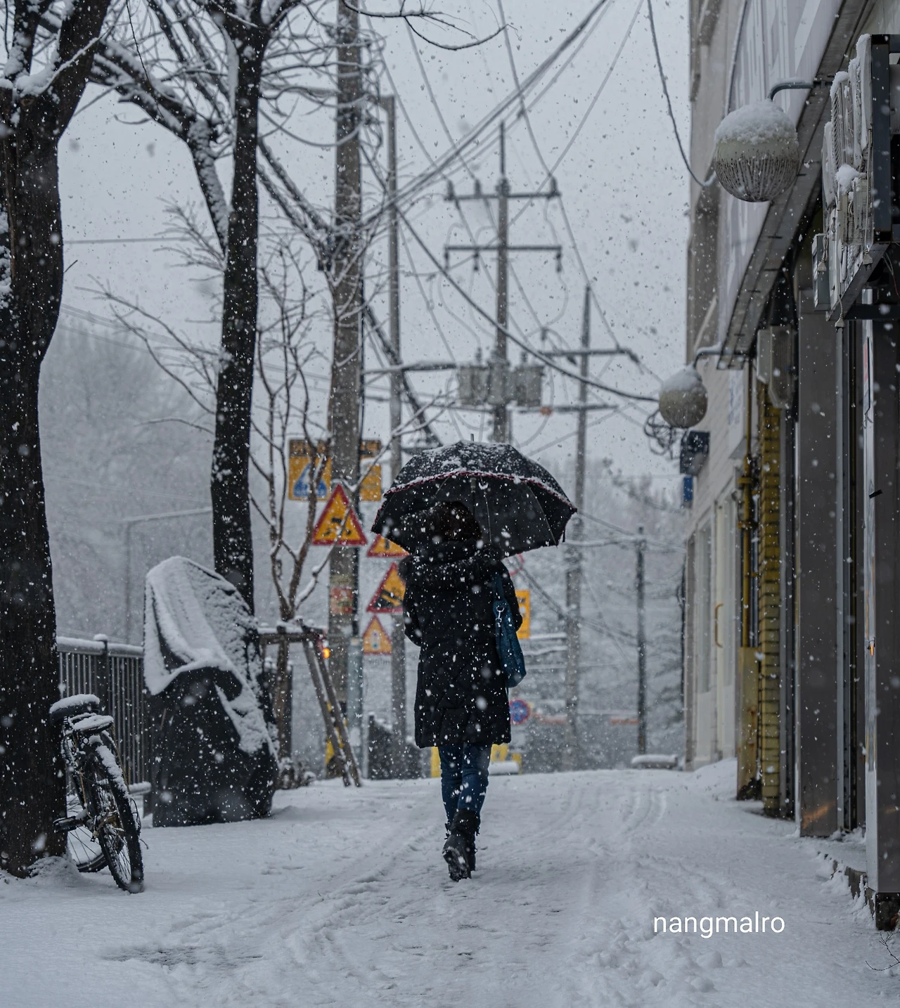 오늘 11월 끝자락에 눈이 펑펑 내렸다. 눈은 항상 반가우면서도 번거롭다. 내릴 때 이쁠 수는 있어도 쌓여있을 때는 재난과도 같다. 눈이 다 녹으면 더러운 구정물 때문에라도 새 신발 신는 걸 포기해야 한다. 그래도 눈이 만들어내는 풍경은 언제나 아름답다. 비 내리는 날씨와는 전혀 다른 낭만을 선사해 주기 때문이다. 매년 겨울만이 주는 특색이다.