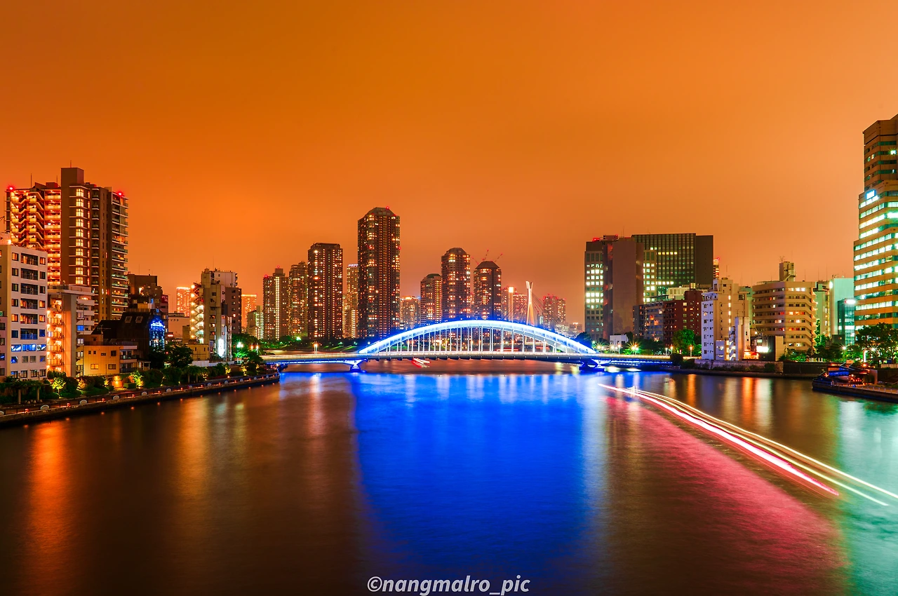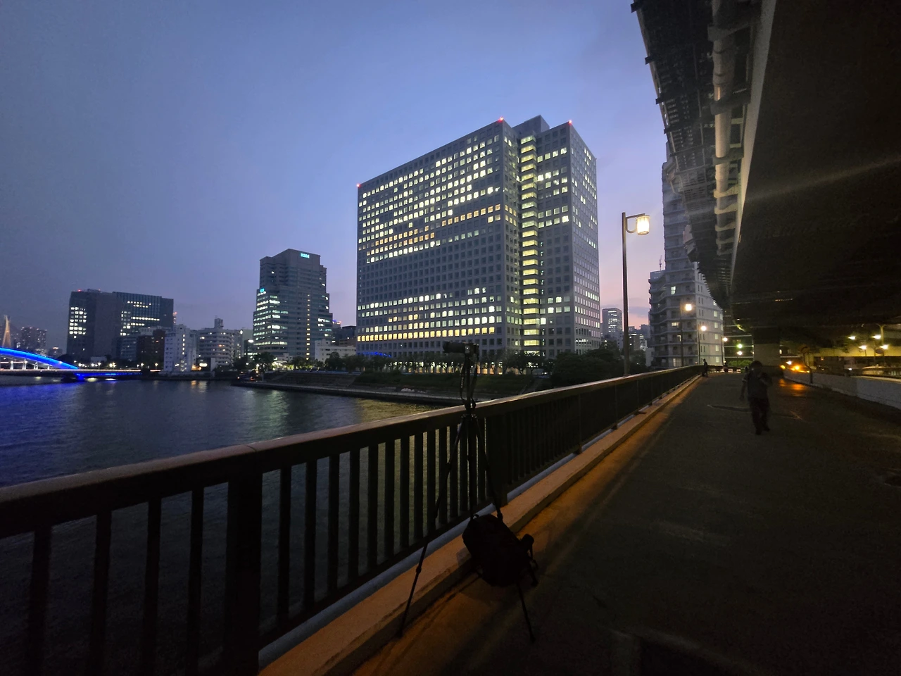 저녁이 되고 스미다가와 대교로 왔다. 이곳에서 저녁 야경을 찍기 위해 존버를 시작했다. 날씨도 괜찮아서 좋았다. 삼각대를 들고 온 이유도 이 때문이었다. 도쿄에서 야경 좀 담아보고 싶었다.