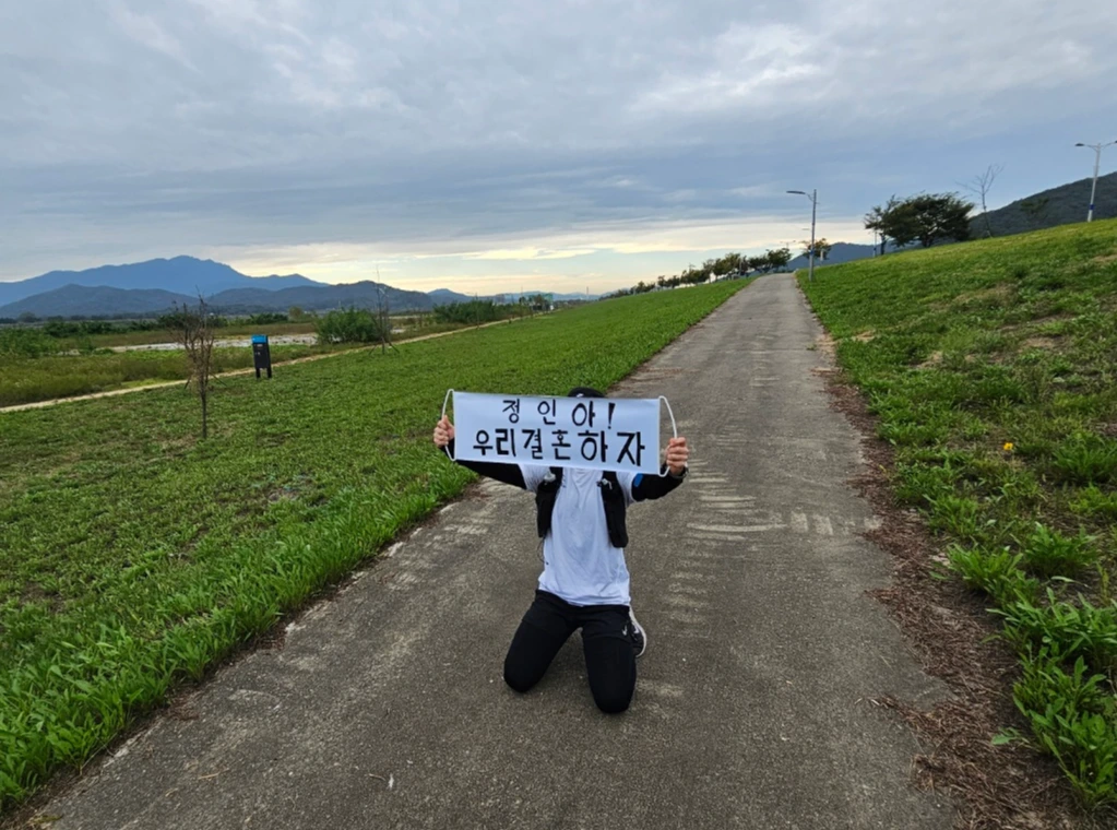 1년간 시간이 날 때마다 쉬는 날을 이용해서 달리고 달렸다. 준비물은 튼튼한 두 다리와 카메라 그리고 ‘우리 결혼하자’는 글자가 적힌 미니 현수막. 그렇게 겨울에서 시작해 봄, 여름, 가을을 지나 다시 겨울이 올 때까지 달렸다. 길었던 우리의 연애 기간만큼이나 길고 험난한 프러포즈의 여정도 어느새 종착지가 가까워지고 있었다.