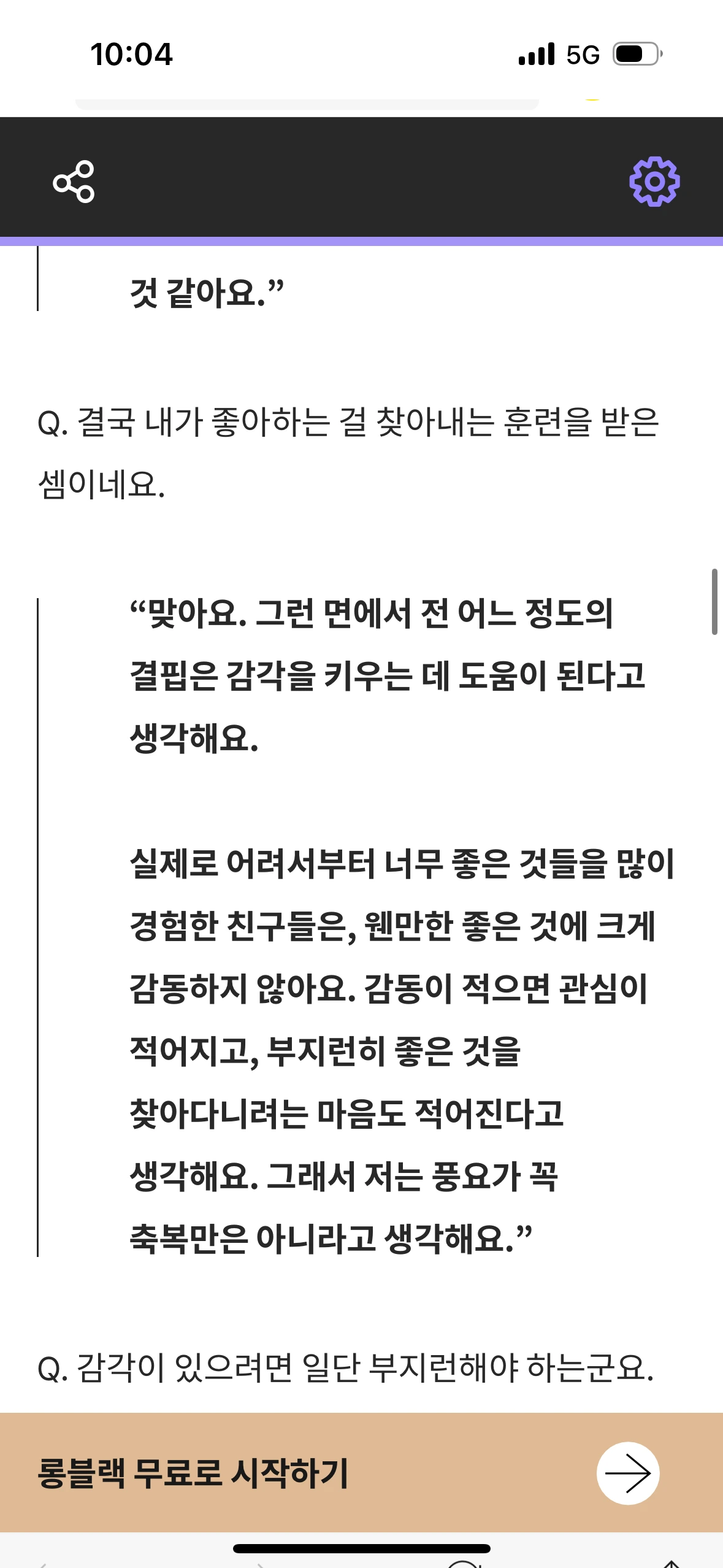 일의 감각으로 시작한 그의 인터뷰는 결국 “주어진 일만 하는 수동적인 태도의 자신에 머물지 말고 깊게 고민하고 깊게 해결책을 내놓는 태도에서 현명할 결정을 내릴 수 있는 감각이 키워진다 “고 말하고 있다.