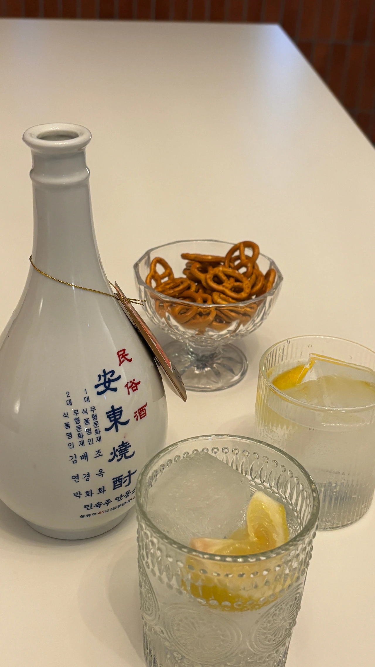 리한과 나는 아이들과 1시간 떨어져 1층으로 내려와 안동소주에