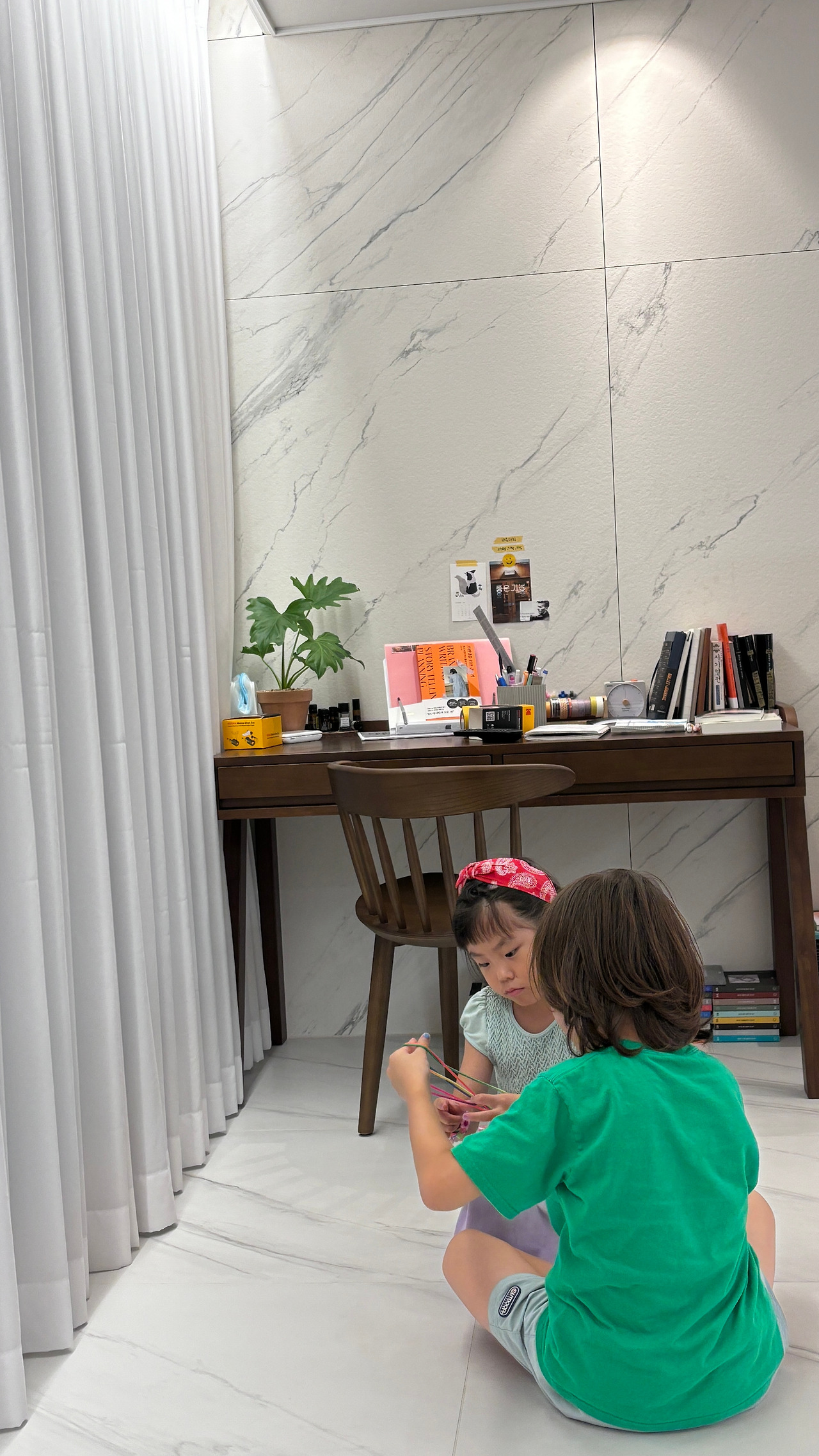 아이 둘 케어가 가장 중요하니, 라이딩에 숙제를 봐주는데