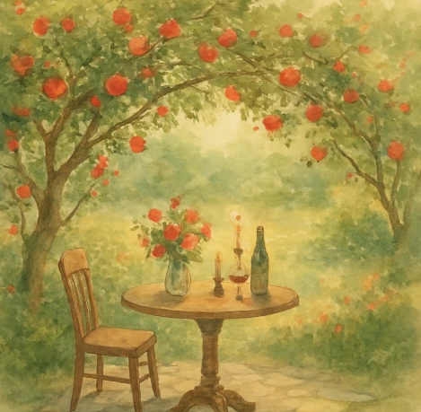 There is light and wine, and sweethearts in the pomegranate flowers.
