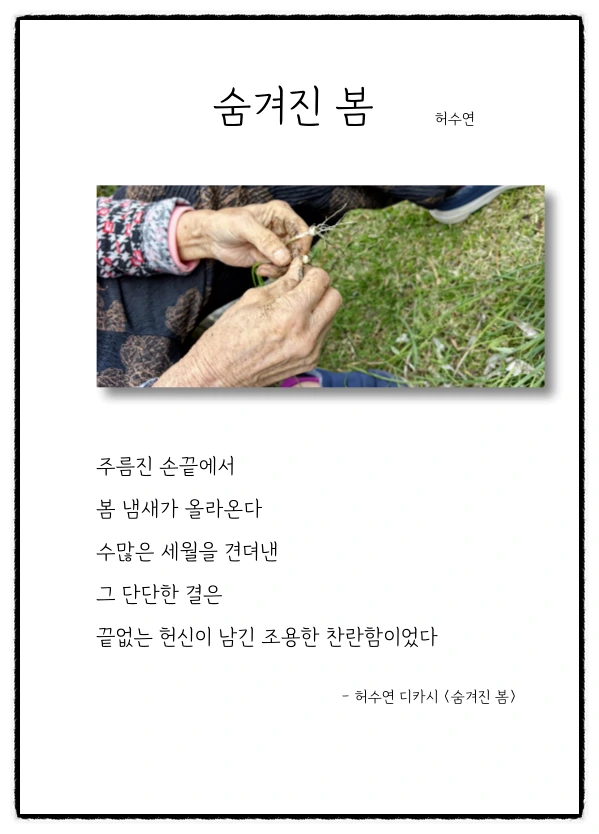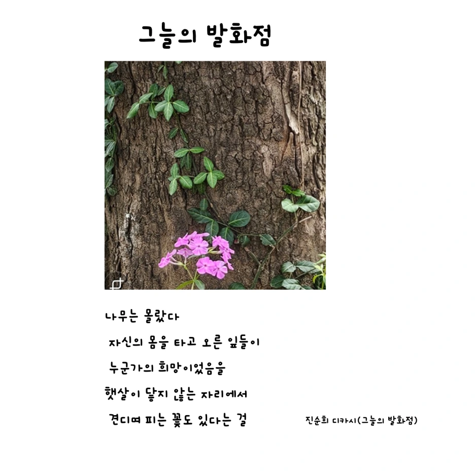 #출근길디카시 #감성시한잔 #하루한줄시 #디카시아트코칭지도사 #AI글쓰기 #AI시창작 #감성을깨우는아침 #한국책쓰기코칭협회 #진순희강사 #출판지도사 #디카시AI코칭지도사 #AI아트코칭지도사 #생성형AI융합교육지도사 #종이책코칭지도사 #전자책출간지도사 #자서전출간지도사 #책놀이지도사 #시니어책놀이지도사 #자기주도학습진로코칭지도사 #경제금융교육지도사