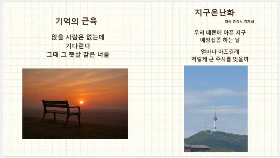 - 디지털 갤러리(또는 미니 시집) 구성 감상력 향상 및 자존감 회복