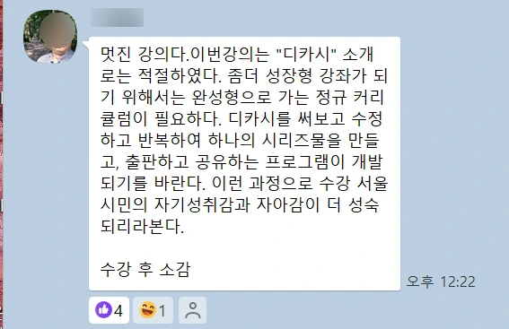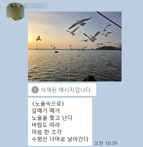다음은 수업 시간에 수강생 분들께서 수업 시간에 바로 단톡방에 올린 디카시입니다.