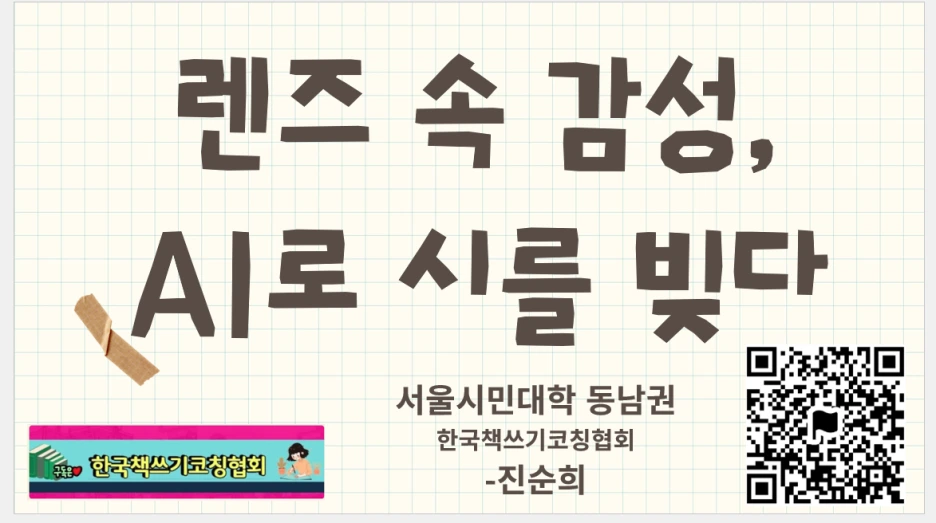 #시민대학_동남권캠퍼스 #디카시 #렌즈속감성AI로시를빚다 ##한국책쓰기코칭협회 #진순희디카시인 #출판지도사 #디카시AI코칭지도사 #AI아트코칭지도사 #생성형AI융합교육지도사 #종이책코칭지도사 #전자책출간지도사 #자서전출간지도사 #책놀이지도사 #시니어책놀이지도사 #자기주도학습진로코칭지도사 #경제금융교육지도사