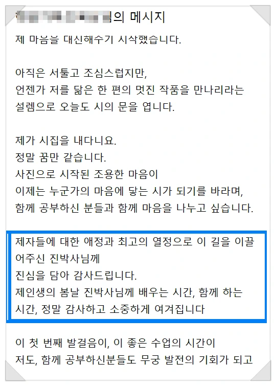 지금 이 과정이, 멈춰졌던 시를 다시 흐르게 할 것입니다.