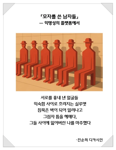 #모자를쓴남자들 #야니스가이티스 #붉은형상 #익명성 #지하철 #진순희디카시인 #AI콘텐츠크리에이터 #프롬프트엔지니어#한국책쓰기코칭협회 #출판지도사 #디카시AI코칭지도사 #AI아트코칭지도사 #생성형AI융합교육지도사 #종이책코칭지도사 #전자책출간지도사 #자서전출간지도사 #책놀이지도사 #시니어책놀이지도사 #자기주도학습진로코칭지도사 #경제금융교육지도사