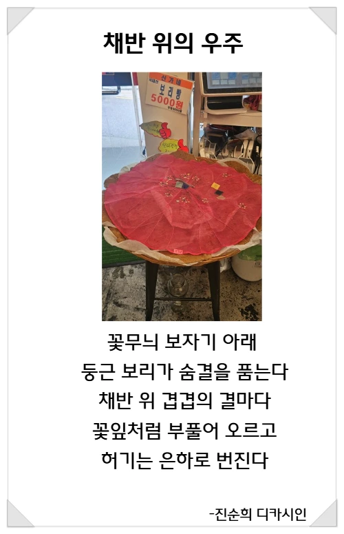 #채반위의우주 #채반위의우주를보다 #진순희디카시인 #AI콘텐츠크리에이터 #프롬프트엔지니어#한국책쓰기코칭협회 #출판지도사 #디카시AI코칭지도사 #AI아트코칭지도사 #생성형AI융합교육지도사 #종이책코칭지도사 #전자책출간지도사 #자서전출간지도사 #책놀이지도사 #시니어책놀이지도사 #자기주도학습진로코칭지도사 #경제금융교육지도사
