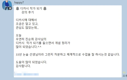 디카시가 뭔지도 몰랐던 분이 첫 수업 이후 바로 감탄한 내용입니다.