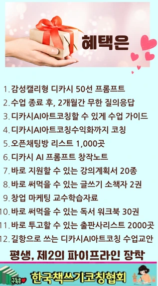 #디카시AI아트코칭지도사자격증 #디카시 #디카시자격증 #한국책쓰기코칭협회 #진순희 #출판지도사 #디카시AI아트코칭지도사 #AI아트코칭지도사 #생성형AI융합교육지도사 #종이책코칭지도사 #전자책출간지도사 #자서전출간지도사 #책놀이지도사 #시니어책놀이지도사 #자기주도학습진로코칭지도사 #경제금융교육지도사