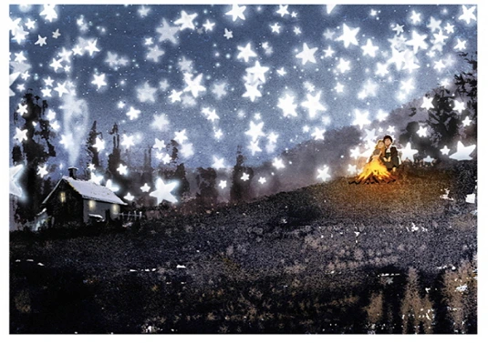 별자리의 이름을 알려주고 있던 그 사이에 아가씨는 양치기의 어깨에 살포시 잠이 든다. 배려심이 넘치는 이 양치기는 잠든 아가씨를 위해 꼼짝도 안하고 앉아있다.