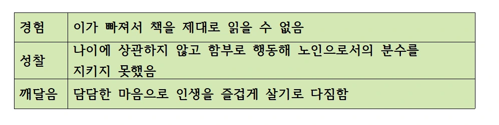 글의 형식인 ‘설’에 대해 정확하게 알고 나니 글을 쓸 때도 경험과 반성을 나눠서 정리하고 깨달음을 통한 자신의 느낌도 1400자 이상으로 써낼 수가 있었다. <낙치설>의 내용을 배경지식으로 삼아 살을 붙여가며 긴 호흡의 글을 써냈다.