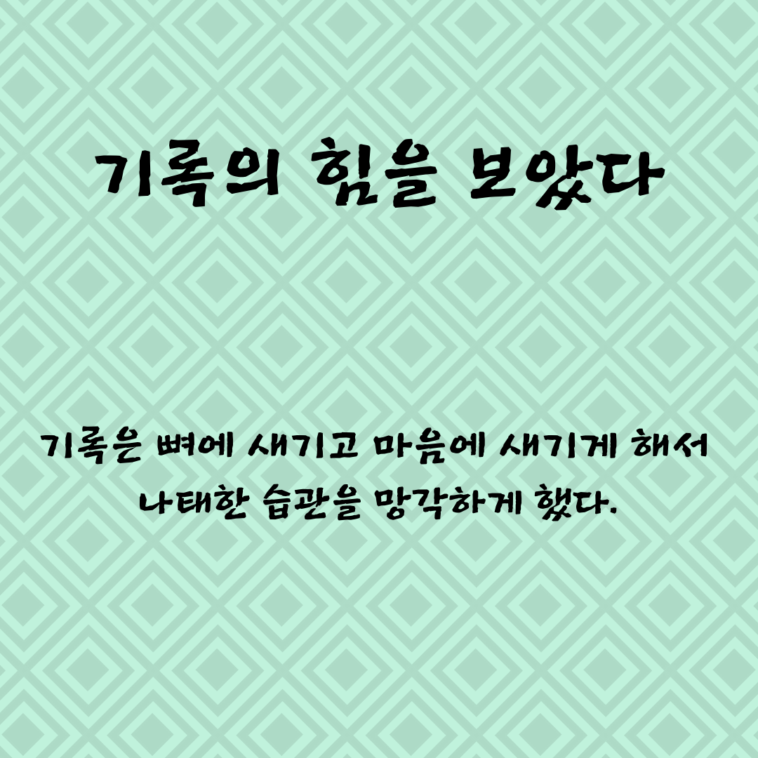 기록은 뼈에 새기고 마음에 새기게 해서 나태한 습관을 망각하게 만들었다