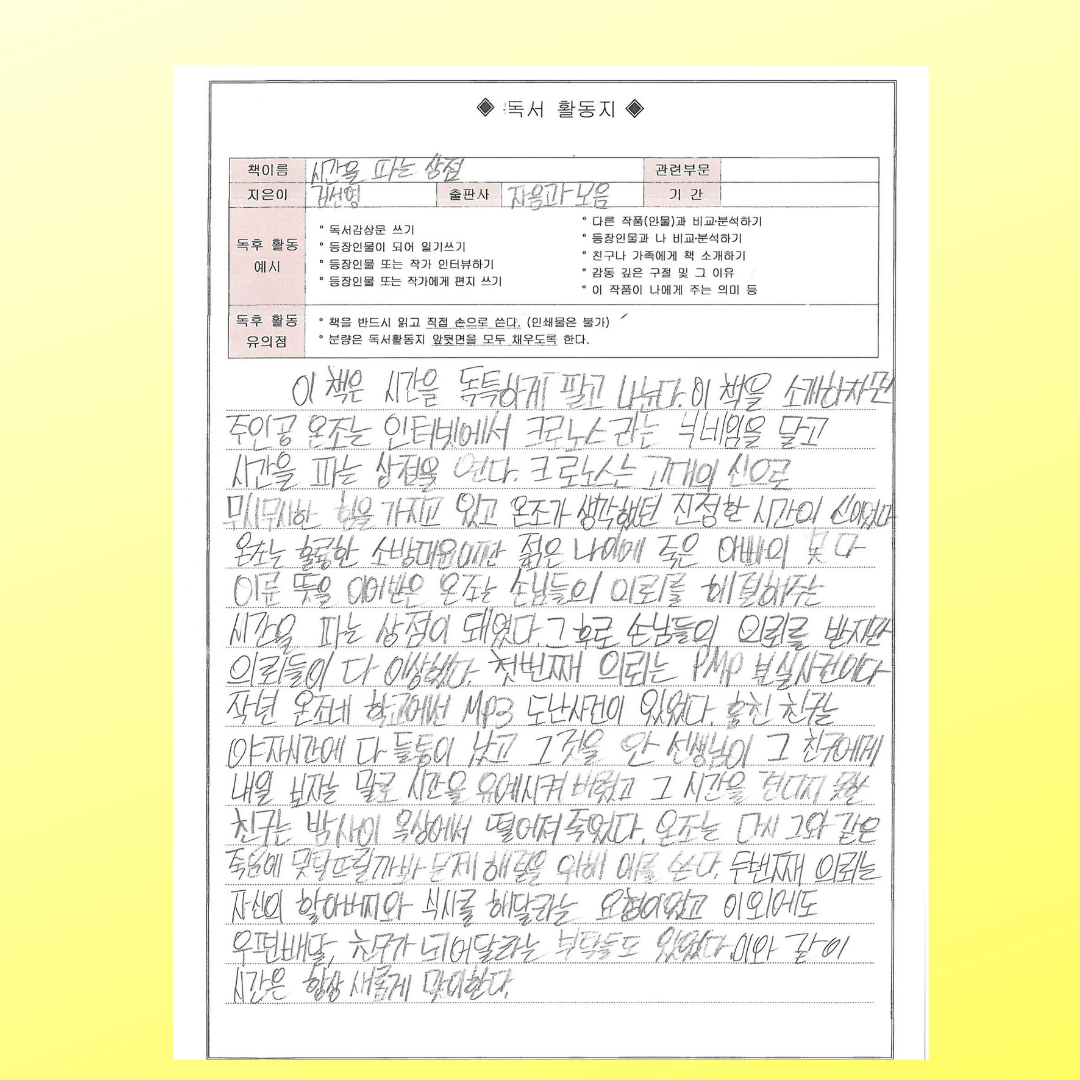 다음은 다영이가 『시간을 파는 상점』을 읽고 마인드맵으로 개요를 짜고 독서록을 쓴 것이다.