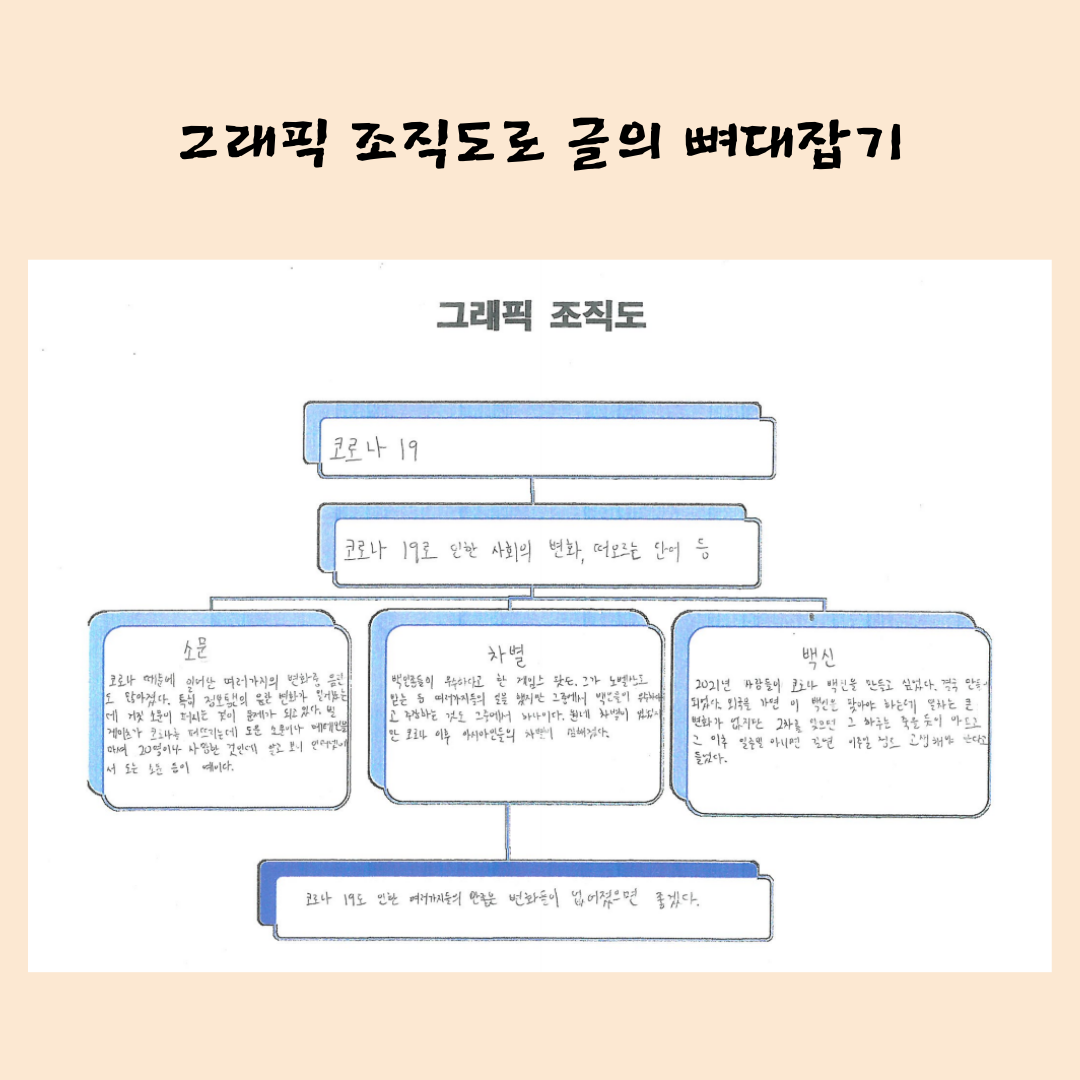 수업을 마무리하면서 독서의 중요성에 대해 한 번 더 강조를 했다. 배경지식이 있어야 독서력도 좋아지고 내용도 풍성하게 펼칠 수 있다고 다음번에는 밀도 높은 토론으로 좋은 글을 써보자고 하며 수업 정리를 했다.