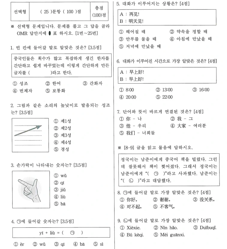 아이들이 한자를 전혀 몰라서 어떻게 하든 암기하도록 꼼수를 부렸다. 이번 기말 시험은 객관식만 보는 데 기출문제를 찾아보니 한어병음 연결하고 숫자 물어보고 성조 찾는 정도였다.