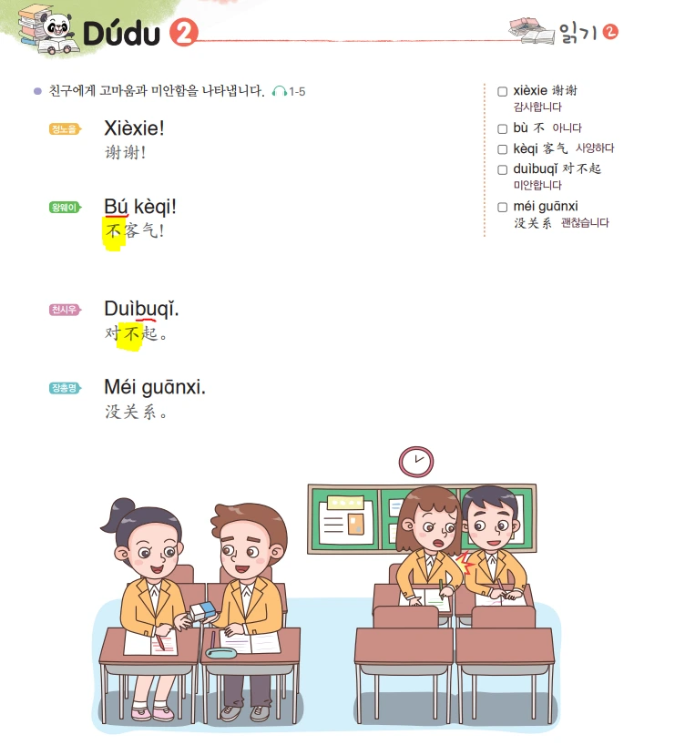수업에 집중하고 있는 은혜만 듣도록 작은 목소리로 수업을 했다. 미리 다락원 교과서 사이트인 <다다익샘>에 들어가 교과서 자료를 컬러로 다 출력해서 줬다. 빔 프로젝터에 띄어서 하나하나 설명을 하며 한어병음을 가르쳤다. 떠들면서도 시험을 잘 보고 싶었는지 갑자기 집중 모드로 돌아섰다. 마냥 미워만하고 안 해 줄 수 없는 이유이기도 하다.