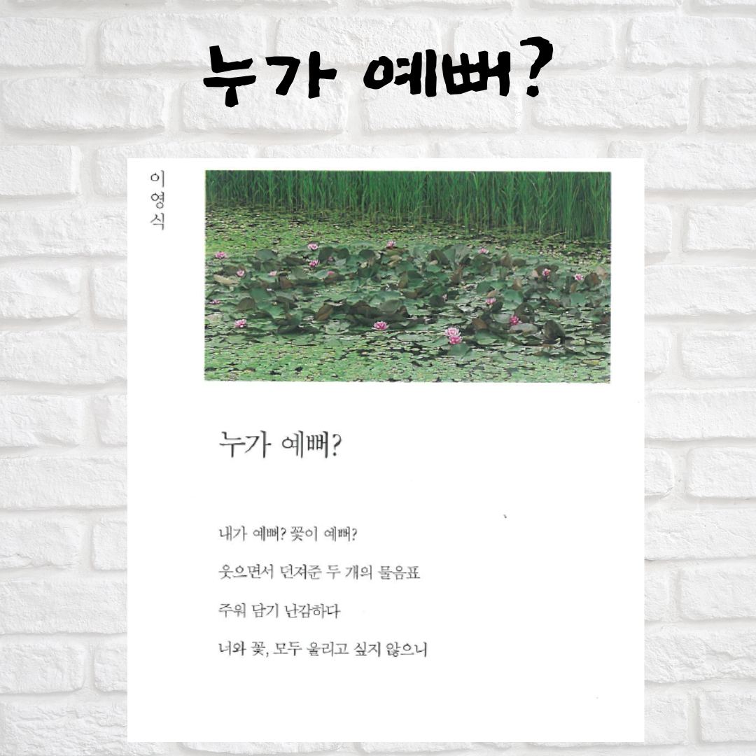 #누가예뻐? #내가예뻐? #꽃이예뻐 #두개의물음표 #물음표 #이영식 #이영식시집 #시