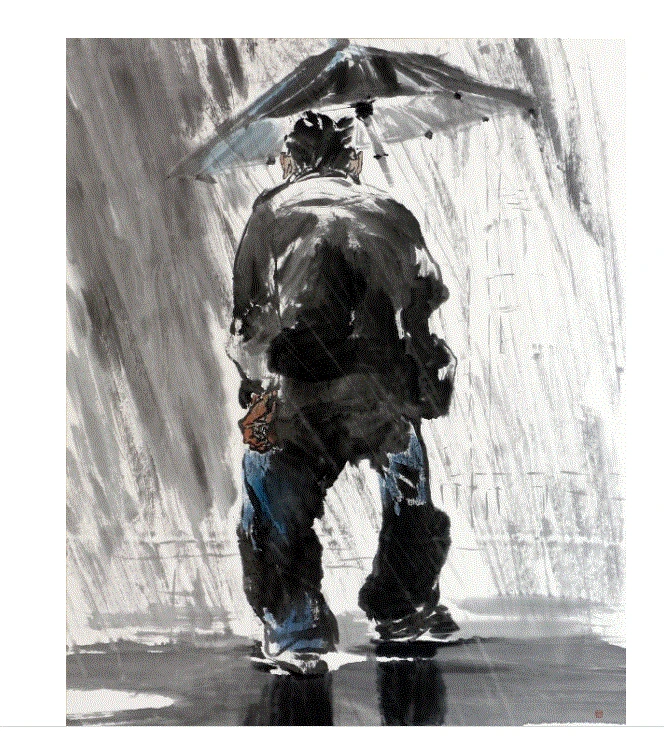 출처: https://bit.ly/34eze23 박순철 화가, 〈비는 내리고...〉, 종이에 수묵담채, 180×140cm, 1997