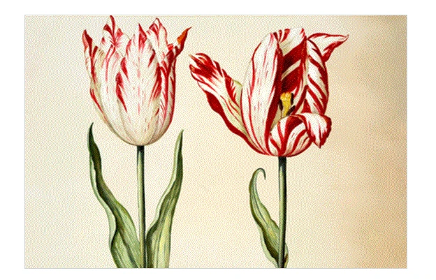 참고로 아래 그림은 황제 튤립(Semper Augustus)이다. 라틴어로 '영원한 황제'라는 뜻을 가지고 있다. 이 구근은 2년 만에 뿌리의 가치가 200% 이상 상승할 정도로 높은 인기를 끌었다고 한다.