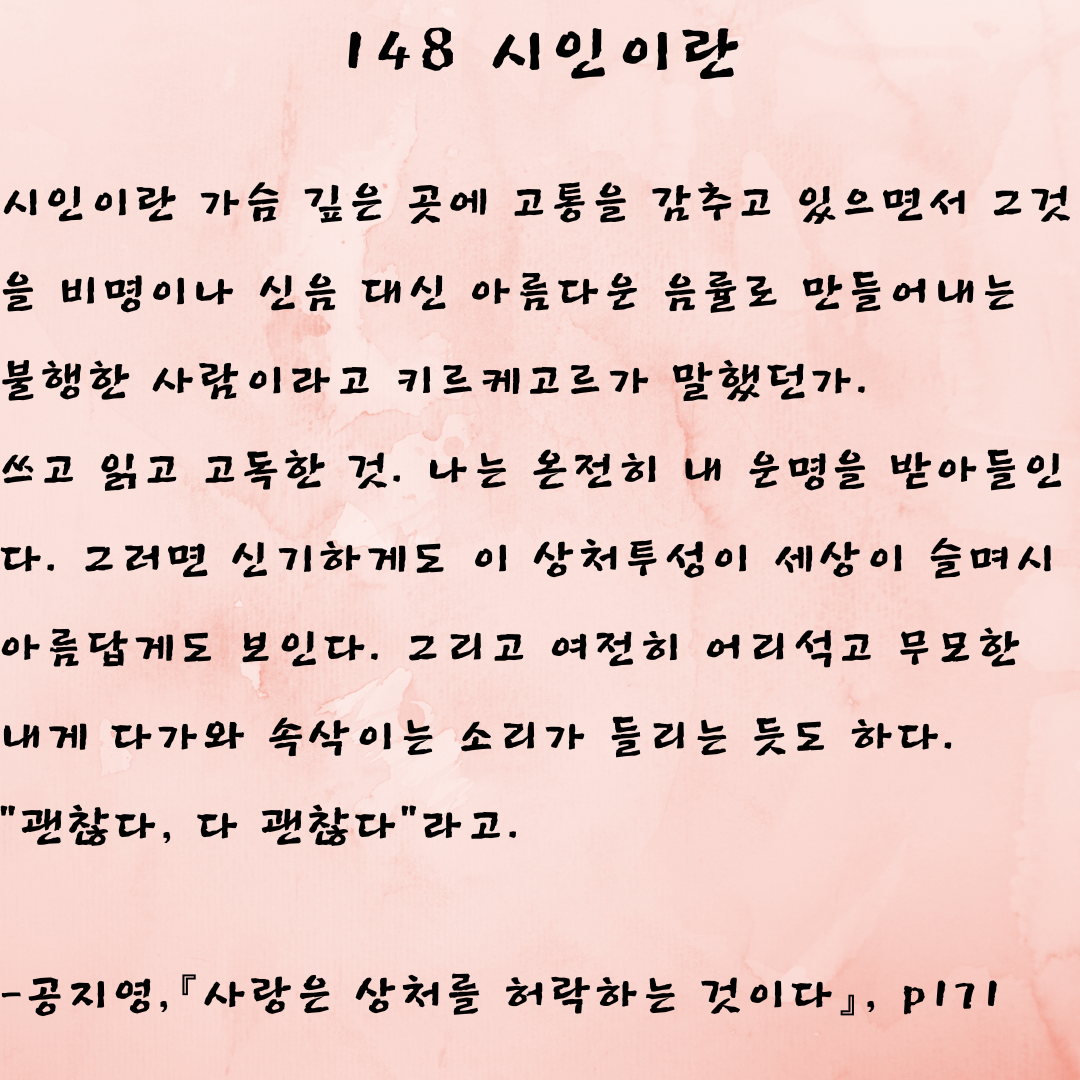 시인이란 견딤의 미학을 스스로 행하는 자이다.