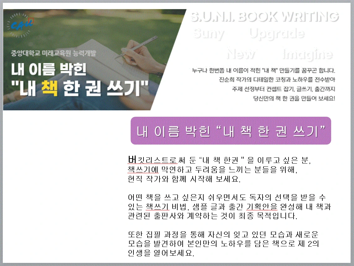 글쓰기 실력을 다질 수 있도록 단단하고 정제된 모범글을 선정해 학교에서 만들어준 단톡방에 매일 글을 올리기로 했다. 작가님들은 이 글을 필타하고 그래픽 조직자에 구조도를 그려보는 연습을 하게 될 것이다. 완성된 한 꼭지의 글을 분석하고 구조도까지 그려보는 훈련을 통해 글쓰기가 몸에 붙도록 해 3~4주 내에 브런치 작가 등단도 하고 출판사에 투고도 할 계획이다. 이렇게 하다 보면 책 한 권 분량의 글이 나와 어느새 자신도 모르게 저자가 된 모습을 보게 될 것이다.