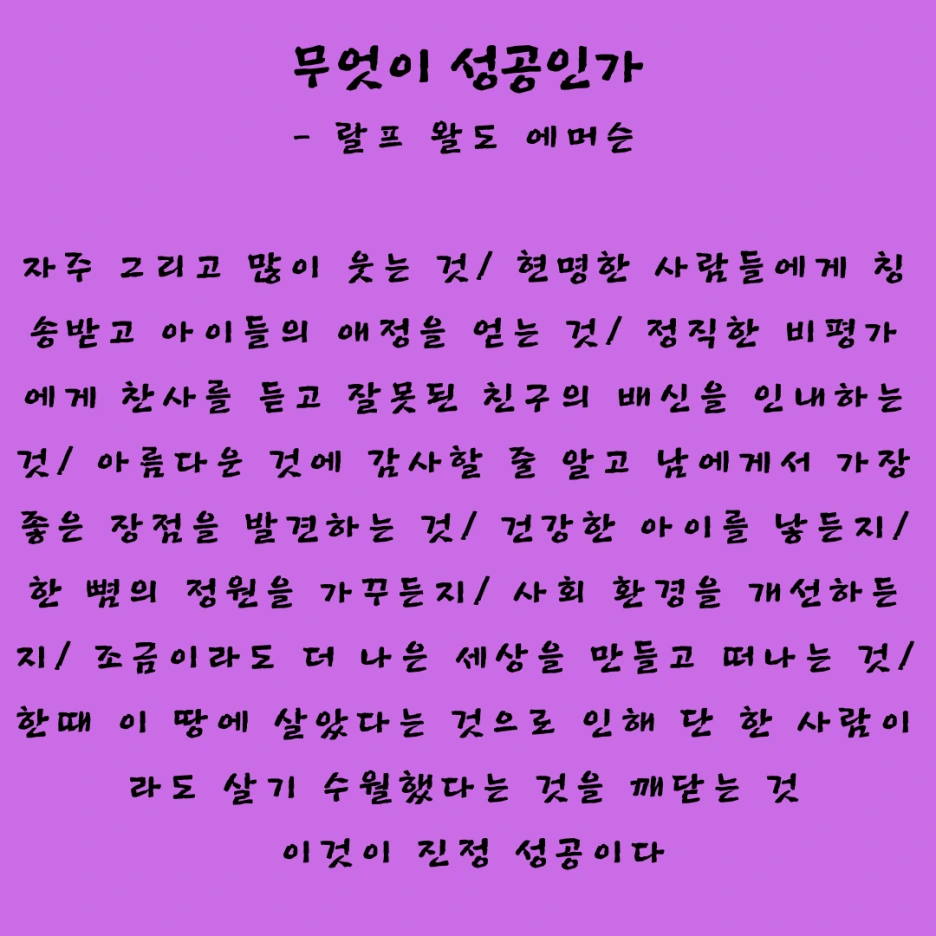 무엇이 성공인가? 랄프 에머슨의 글을 인용하며 시작하려 한다.