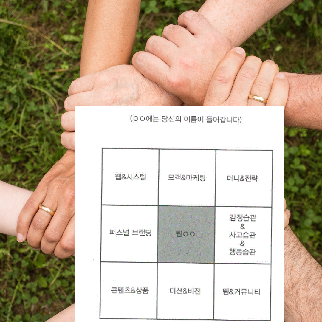 “「나홀로 비즈니스」이기 때문에 더욱 「팀의 발상」이 중요하다”라고 해서 사토 텐이 한 「팀 DEN」처럼 나도 내 팀의 명칭을 「팀 SOON」으로 만들어봤다. 9칸에 팀 구성원을 모으는 일만 남았다. 상황 변화에 재빠르게 대응할 수 있는 작은 팀을 만드는 게 급선무인 듯하다.