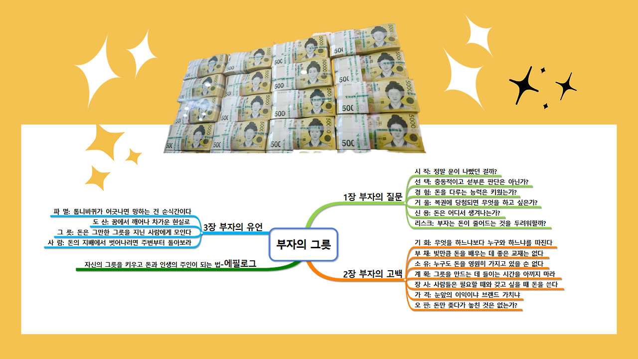 일례로 건물주 되기 커뮤니티에도 건물주가 되기 위한 방법만 있지 교육하는 강사가 부자인 경우 또한 드물게 우리의 현실이다. 이들이 부자가 되지 못하는 것은 아직 돈을 담아낼 그릇이 크지 않아서일 게다.