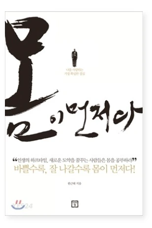 『몸이 먼저다』는 “나를 사랑하는 확실한 결심”이라는 부제답게 ‘몸’의 중요성에 대해, 몸부터 확실하게 챙기라고 채근하고 있다. 몇 년 전 한근태 소장님의 강연에 참석해 몸의 소중함에 대한 이야기를 들었다. 물리치료를 그렇게나 많이 다녀도 낫지 않던 오십견이 PT를 받으며 감쪽 같이 사라졌단다. 주 1회 꾸준히 PT를 받기 위해서라도 일을 오랫동안 계속할 걸라는 계획을 들었다. 어디를 가나 맨 앞에 앉아 있는 내게 운동을 권했다. 아마도 한 소장님 PT 받는 곳에서 얼마 멀지 않은 곳에 살고 있기에 쉽게 권하신 듯했다.