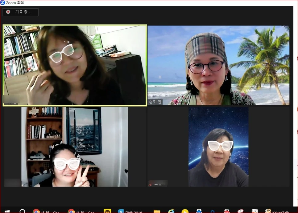 그런데 수업 시작하면서 돌아가면서 근황 이야기하고 서로 대화를 주고받다 보면 사진캡처하는 것을 깜박 잊게 됩니다. 처음 인사할 때 화면에 얼굴을 보이니까, 이때 화면 캡처를 해야 해요. 그런데도 예비 작가님들의 이야기에 심취하다 보면 사진캡처 하는 것을 빠뜨리게 됩니다. 수업 마무리할 때쯤 돼서야 생각나서