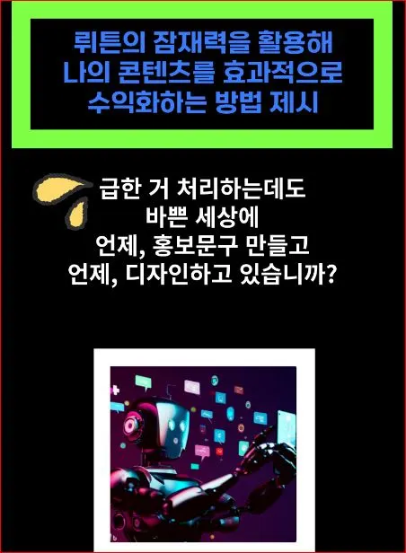 임팩트 있게 참 잘했지요. 이용숙 작가님께 전자책 상세이미지 만드는 강의 개설하시라고 지금 부추기고 있는 중입니다. 홍보 문구도 신경 써서 아주 잘하셨더라고요. 뤼튼의 탄생 배경을 잘 버므려서 상세이미지에 녹여냈더군요.