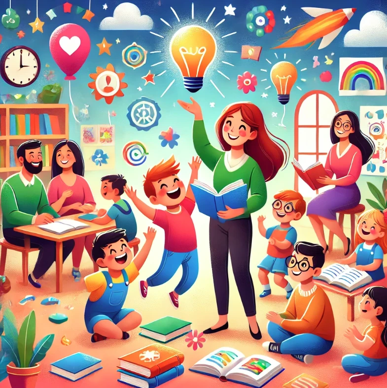 �돌봄 늘봄 교실에서 활용할 맞춤형 책놀이 프로그램을 준비 중인 학부모 및 교육자