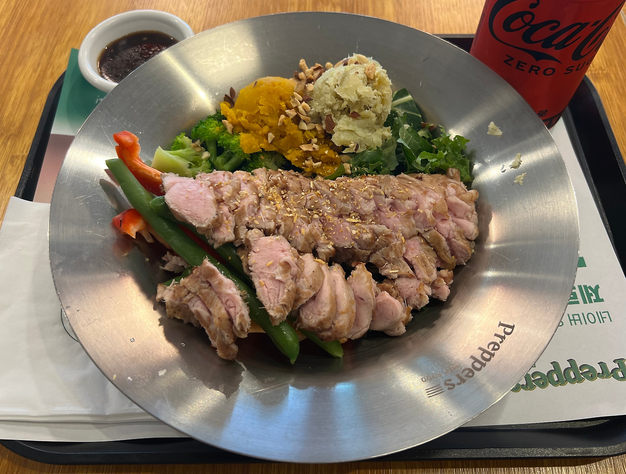 요즘 다이어트 중이라 식단과 운동 병행중인데 늦은 점심으로 포크 플레이트 먹으러 왔어요. 영양분도 골고루 들어있고 가격도 저렴해서 자주 먹게 되네요. 나이 먹으니까 예전처럼 드라마틱하게 빠지지는 않지만 한달동안 4kg 뺐네요. 일단 6kg 더 빼는 걸로.