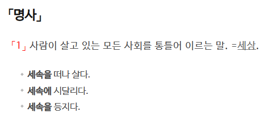 여기서 반드시 주의할 것은 ‘세속’과 ‘고답’ 모두 그 대상이 지닌 속성에 대한 비판적 관점을 드러낼 때 자주 쓰인다는 것입니다. 표준국어대사전에서 ‘세속’을 검색하면 나오는 예문만 보더라도 그러한 쓰임새를 확인할 수 있습니다.