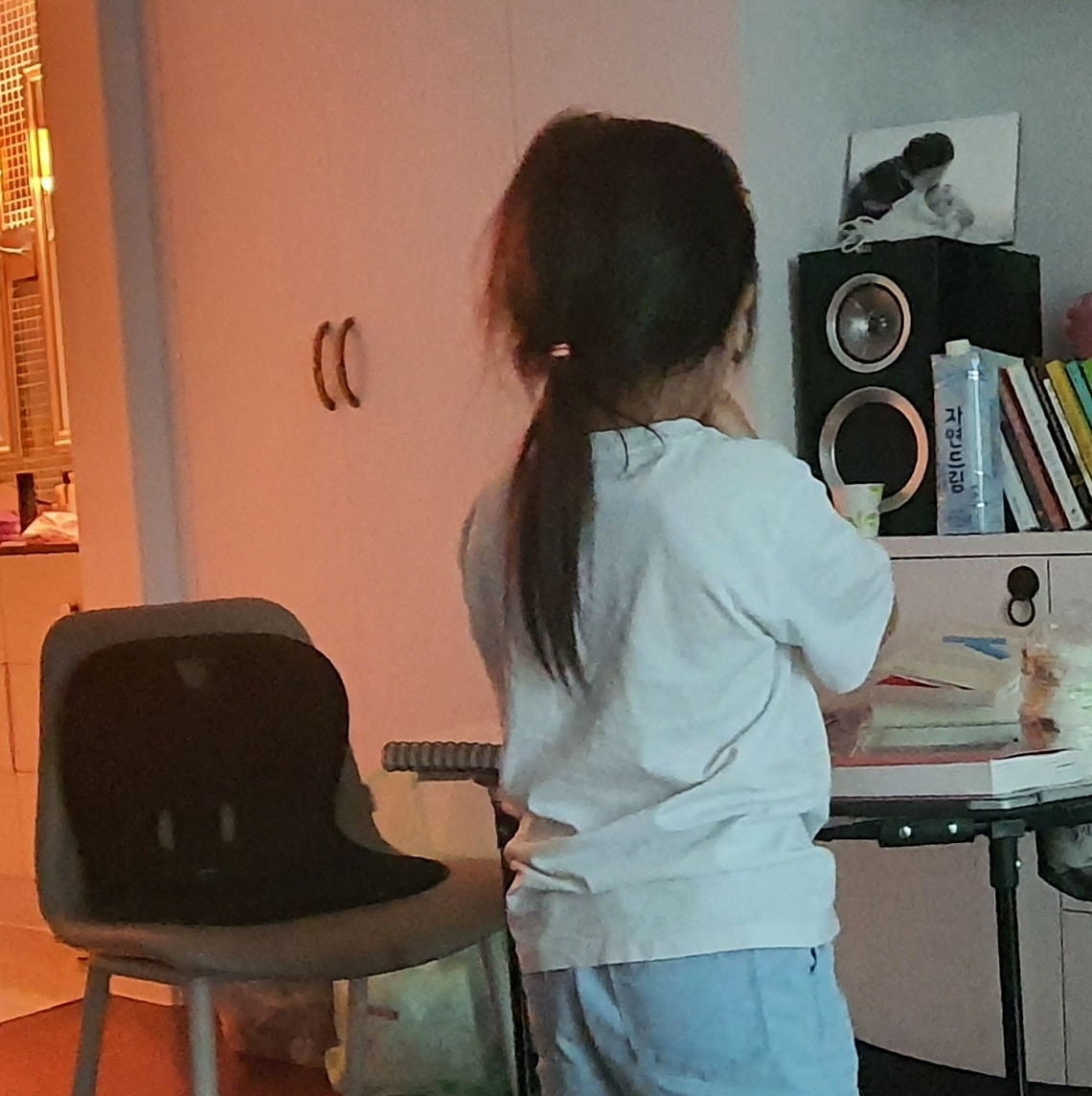 비록 하루 동안 체온을 나누지 못했지만 차가운 유리창으로 마주하다 따뜻한 살결을 만지니 이 꼬맹이의 존재가 생기를 준다. 아이란 이런 존재인가? 통통 튀며 웃다가도 갑자기 표정을 확 바꾸어 징징거리다가 또 갑자기 하트 세례를 막 퍼부으며 엄마의 혼을 쏙 빼놓는다. 코로나 걸려서 엄마방에 같이 있어서 좋다며 나를 꼭 안고 얼굴 곳곳에 뽀뽀를 해준다. 우리 사이에는 이제 스킨십에 제한이 없다.