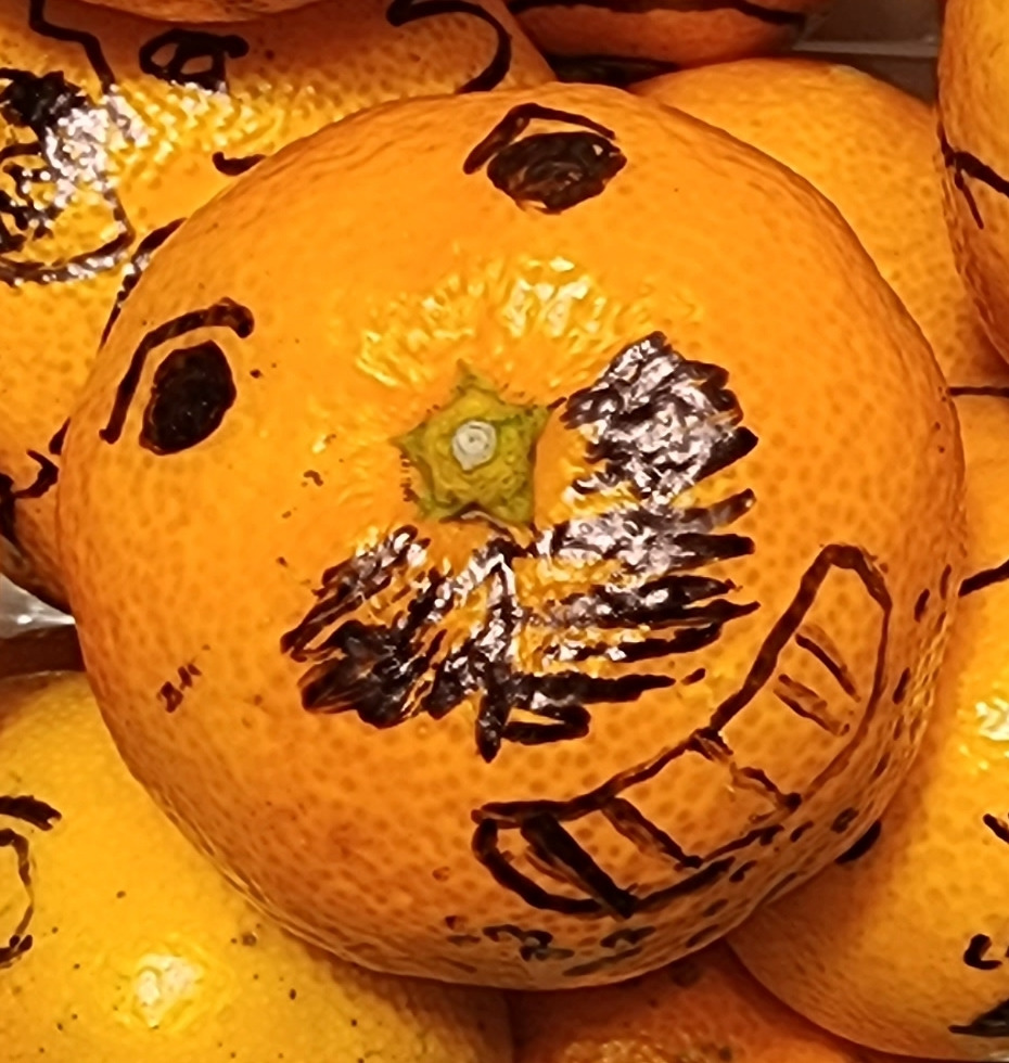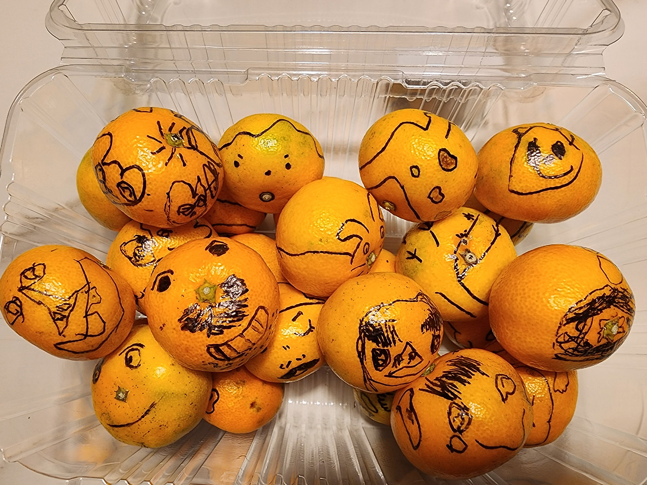 식탁 위에 귤 상자를 꺼내놓으니 투명한 용기에 가득 담긴 귤이 다 먹히지 못하고 버려질 염려가 생긴다. 언젠가 누군가의 사진첩을 통해 봤던 귤 얼굴들이 떠오른다. 마침 네임펜이 있어 행운이다.