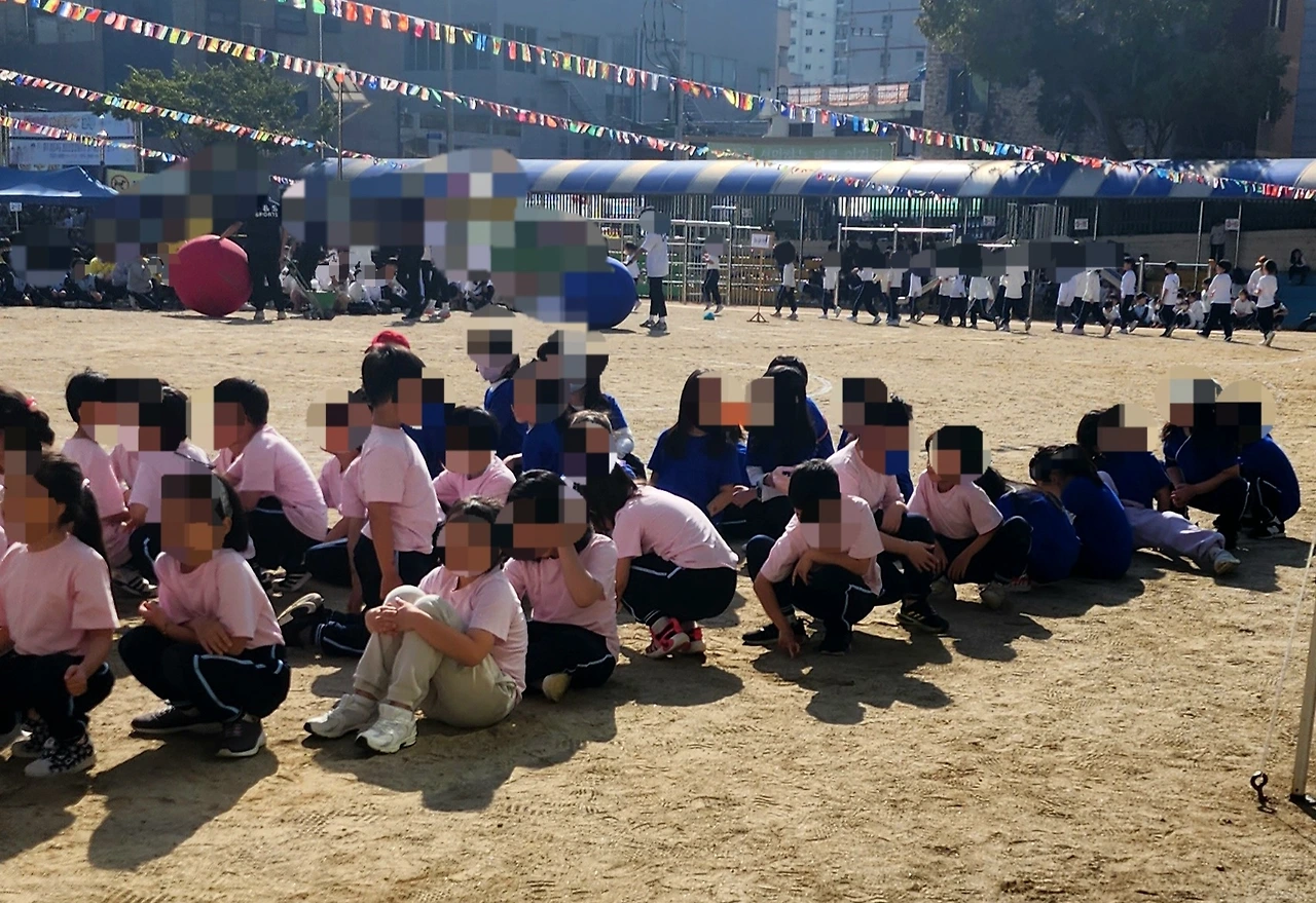 아이들이 앉아있는 천막 위로 학반이 적혀있다. 우리 아이도 친구와 어울려 장난이라도 치면 좋을 텐데... 발랄하게 응원하는 반아이들 사이에서 우두커니 제자리를 지키는 듯 앉아있는 우리 아이의 모습은 대조됐다. 그러나 내향적인 아이의 얼굴에도 분명 즐거움이 묻어있었다.