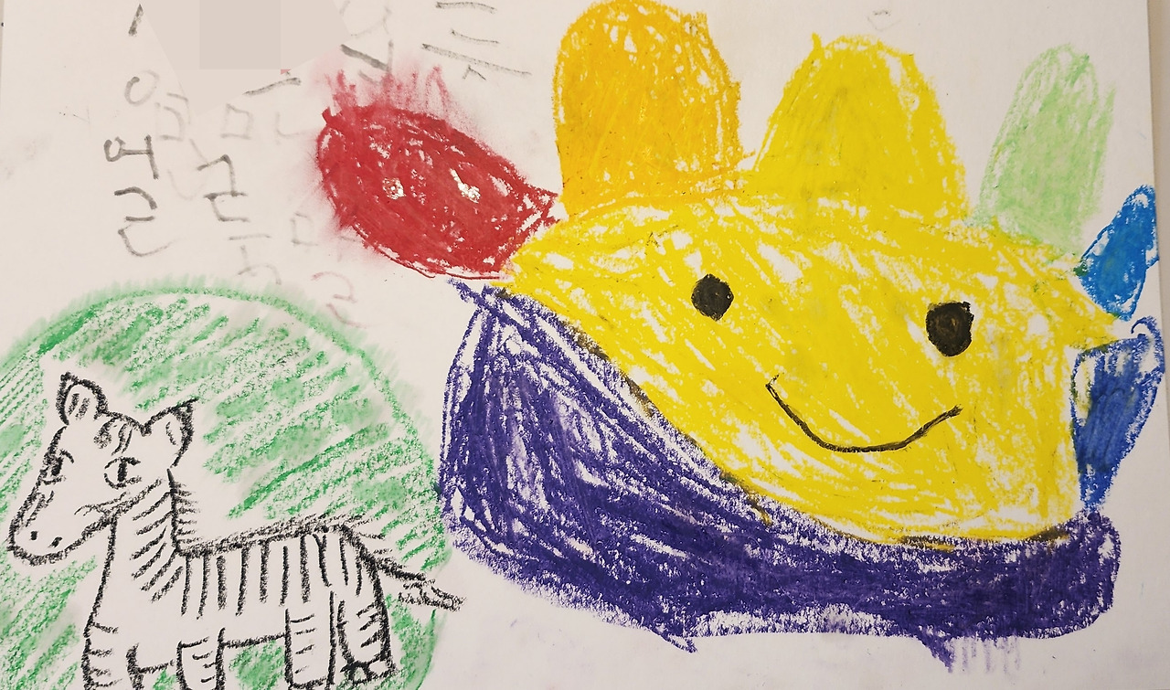 내가 그린 얼룩말과 아이가 그린 스마일꽃