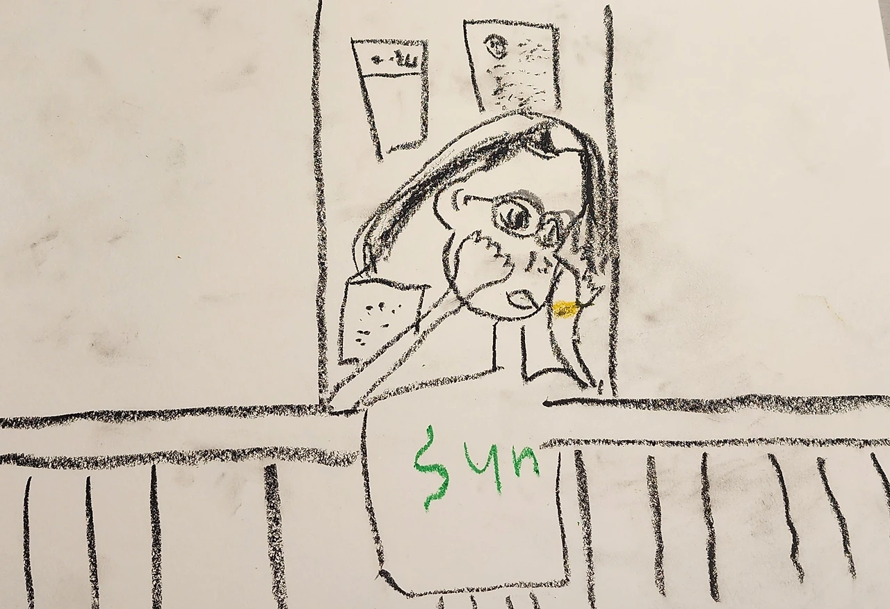 "내가 엄마 그려줄께. 움직이면 안돼."