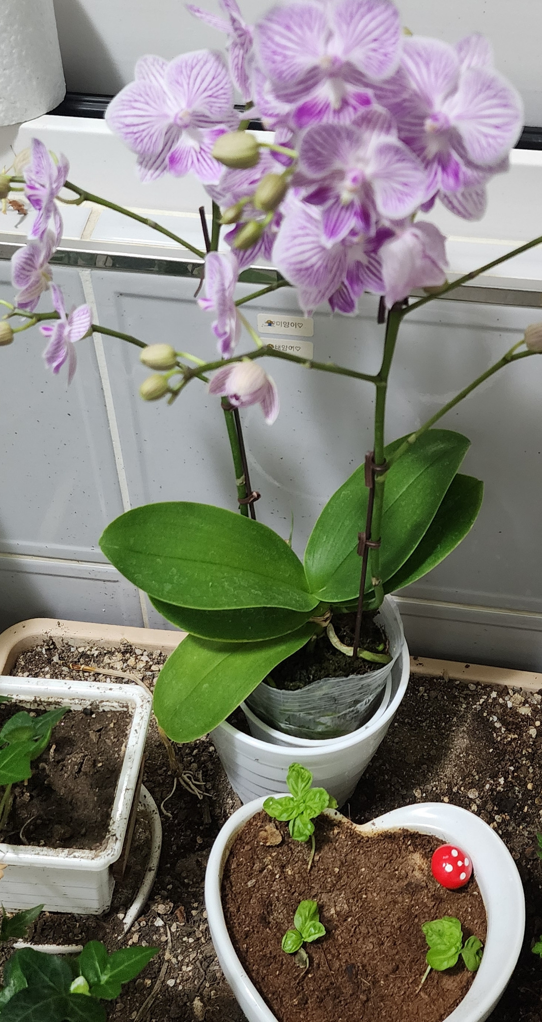 미소 지으며 방에 들어오려는데 노란 꽃이 방긋, 분홍꽃도 방긋이다. 언제 얘들까지 데려다 놓으신 걸까?