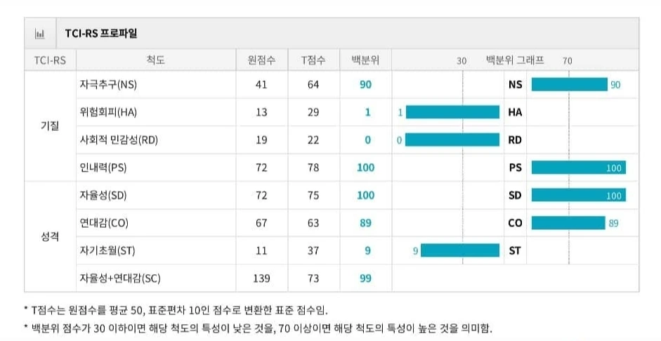 TCI 검사와 과거에 했던 어떤 검사결과