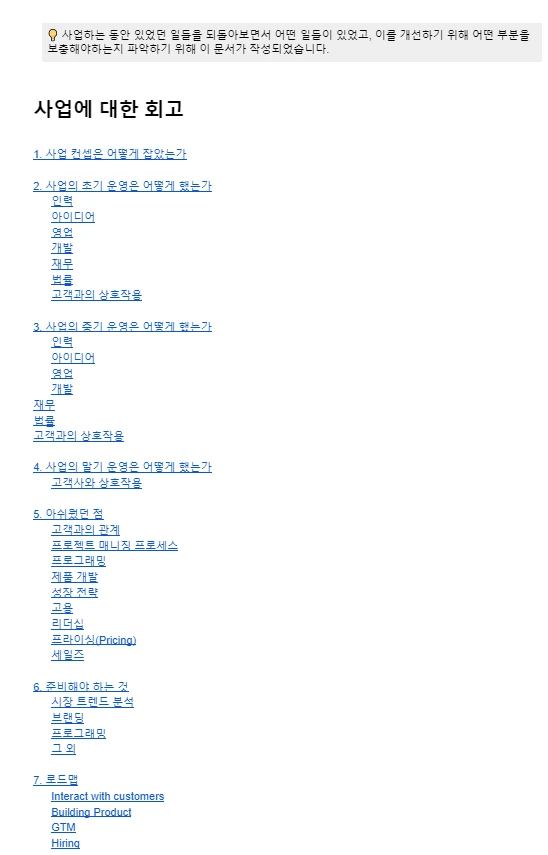 사업에 대한 회고