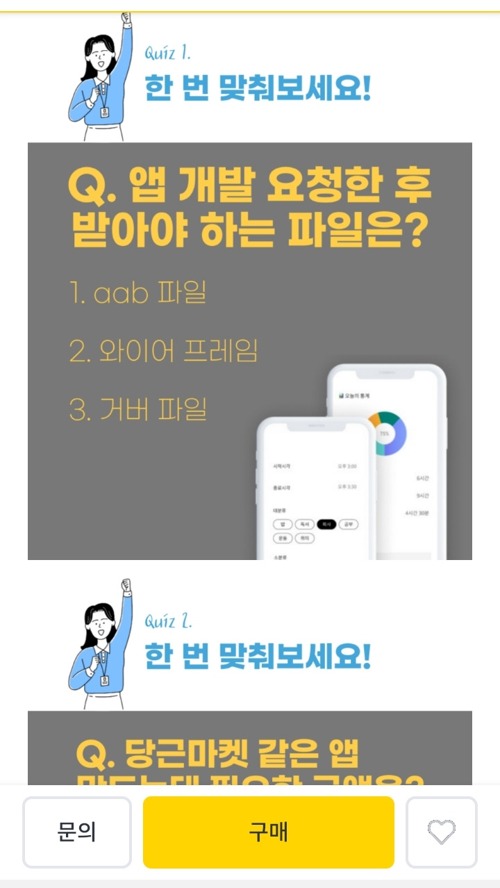 3~5월 동안은 상세페이지 이미지가 아예 없었습니다. 5월 말 즈음에는 아래와 같이 상세페이지를 퀴즈 형식으로 만들었습니다.