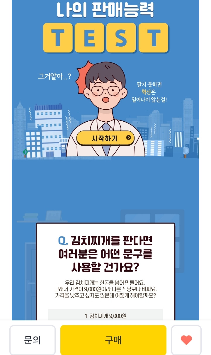 퀴즈를 내서 소비자가 이 책에 어떤 내용이 나올지 알게 하고, 퀴즈의 정답에 대해 확신이 없으면 불안감이 생겨 제 책을 구매하길 바라며 제작하였습니다.