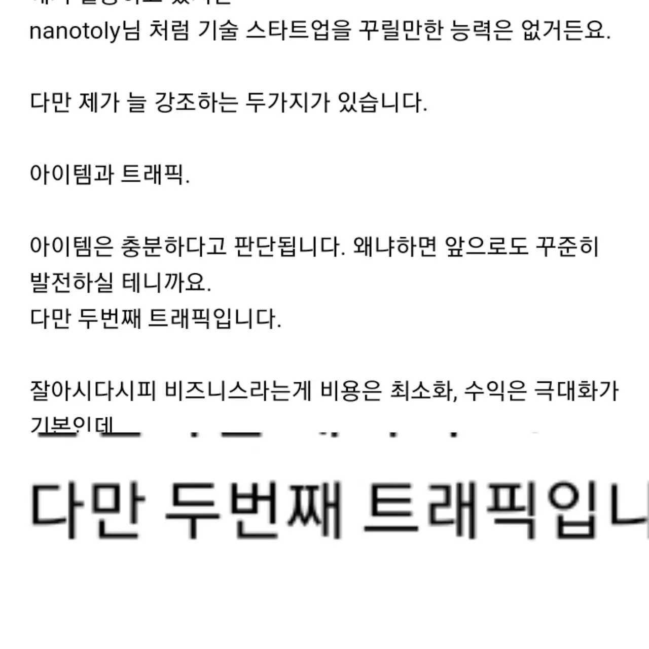 앞으로 딱 한 달 동안은 트래픽과 플랫폼에 대해서 공부할 것이다. 다른 계획들을 모두 스탑하고 가장 중요한 것에 몰입할 것이다.