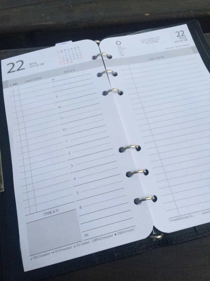 첫번째 기록이다. 본인은 언제 어디서나 프랭클린 다이어리를 가지고 다니며 미팅과 업무 내용을 메모하면서 그날의 일들을 모두 기록한다. 항상 휴대하고 다녀야 하기 때문에 휴대성이 편리한 CEO 버전을 사용하고 있다. ( CEO 버전을 가지고 다니면 본인도 CEO 가 될 수 있을 것 같은 마음이 들기도 한다. ^^ ) 그리고 갑자기 떠오른 아이디디어들도 기록하는 역할을 하고 있다. 프로젝트 또는 아이디어 완성을 위한 처음 단계이기 때문에 간단하고 빠르게 기록하는 것이 중요하다.