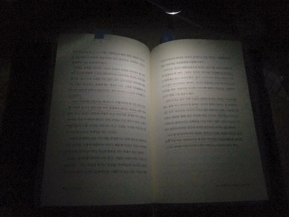 결과는 대 만족이었다. 처음에 구입했을 때는 너무 작아서 어두운 곳에서 책을 읽을 수 있을까 걱정을 했었는데 사용해보니 오히려 빛이 강해 꼬맹이들에게 방해가 될 정도로 밝았다.